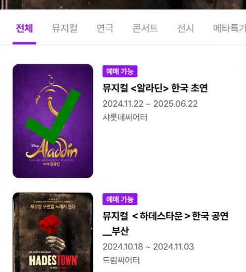 3. 그러면 페이지가 공연 목록이 나오는데 원하시는 공연을 선택해주세요.