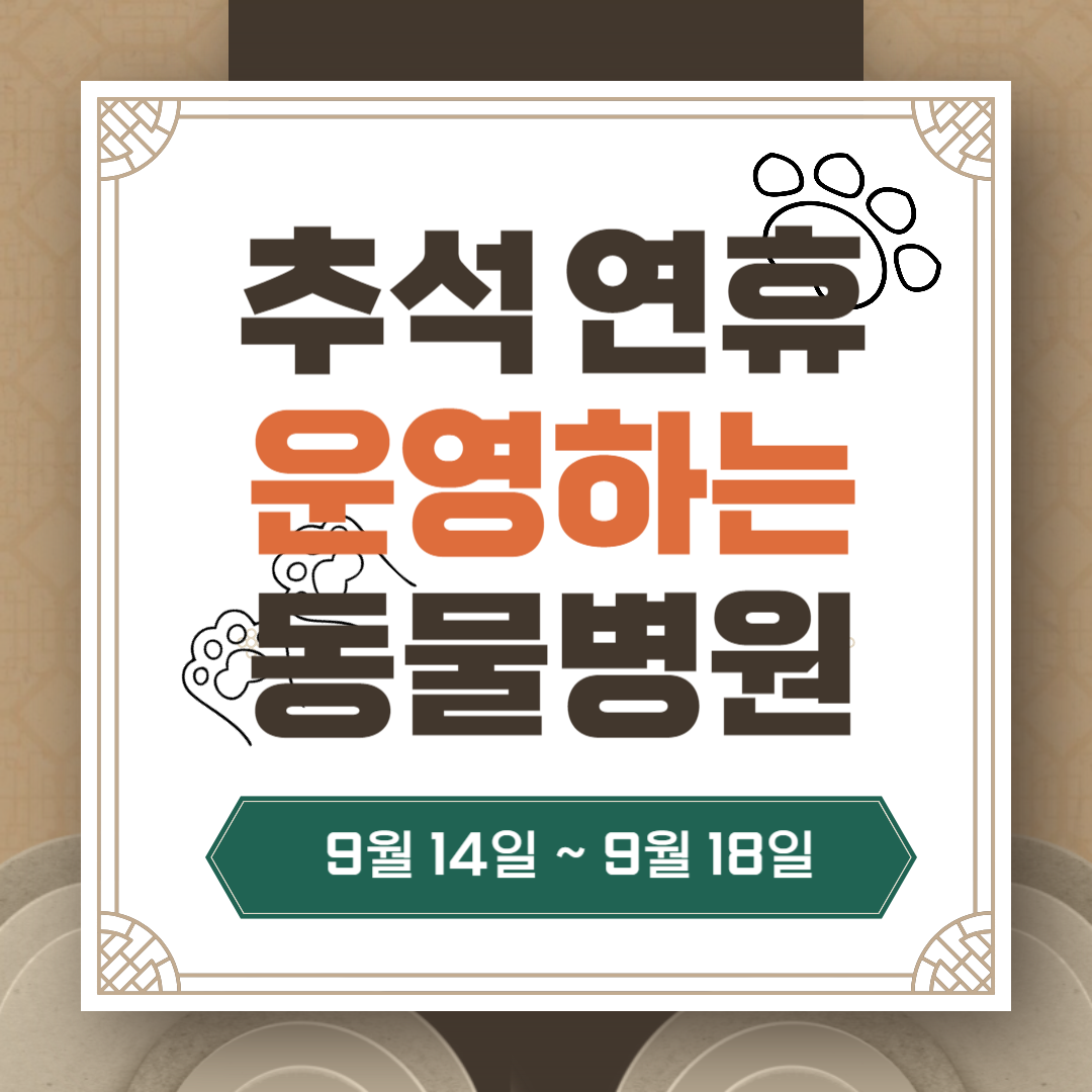 2024년 추석 연휴내내 운영하는 동물병원 알아보기 (2) | 2024.09.15 |